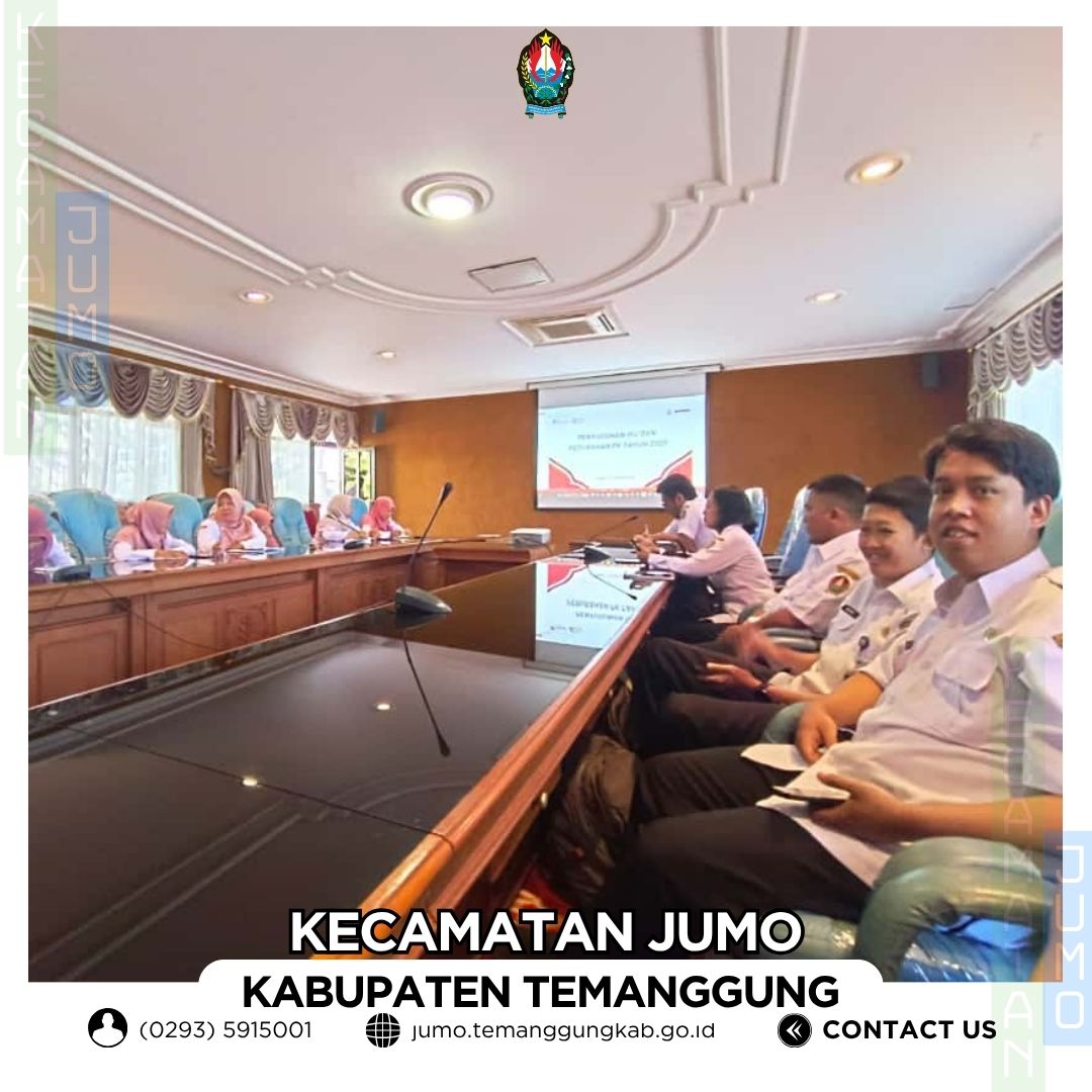 Prakom Kecamatan Jumo menghadiri Penyusunan IKU dan Perubahan PK Tahun 2025 di Loka Bhakti Setda, Rabu 15 Oktober 2025 : Kecamatan :Jumo Website : jumo.temanggungkab.go.id Smart Governance (Pemerintahan Cerdas) 16 Oktober 2025 08:37:47 6 Prakom Kecamatan Jumo menghadiri Penyusunan IKU dan Perubahan PK Tahun 2025 di Loka Bhakti Setda, Rabu 15 Oktober 2025